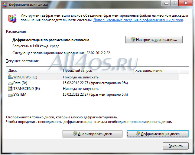 Дефрагментация и оптимизация дисков